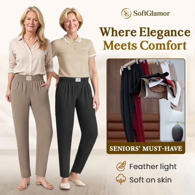 Reimagine everyday elegance with SoftGlamor, gracefully tailored pants that flatter the mature figure with soft comfort and timeless sophistication.